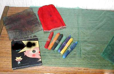 Jennifer White Bannecke, Class of '66 - I may be way off but I think the mystery photo is something you you put on your black & white TV to color with Captain Kangaroo. You had a piece of green peel off paper that you put on the screen and you would follow directions from Captain Kangaroo. I remember that I thought it was the greatest and loved using it when the show came on. All you had to do was wipe it off and use it again next time. I had it at my grandmothers house and I think we mailed in to order it.
